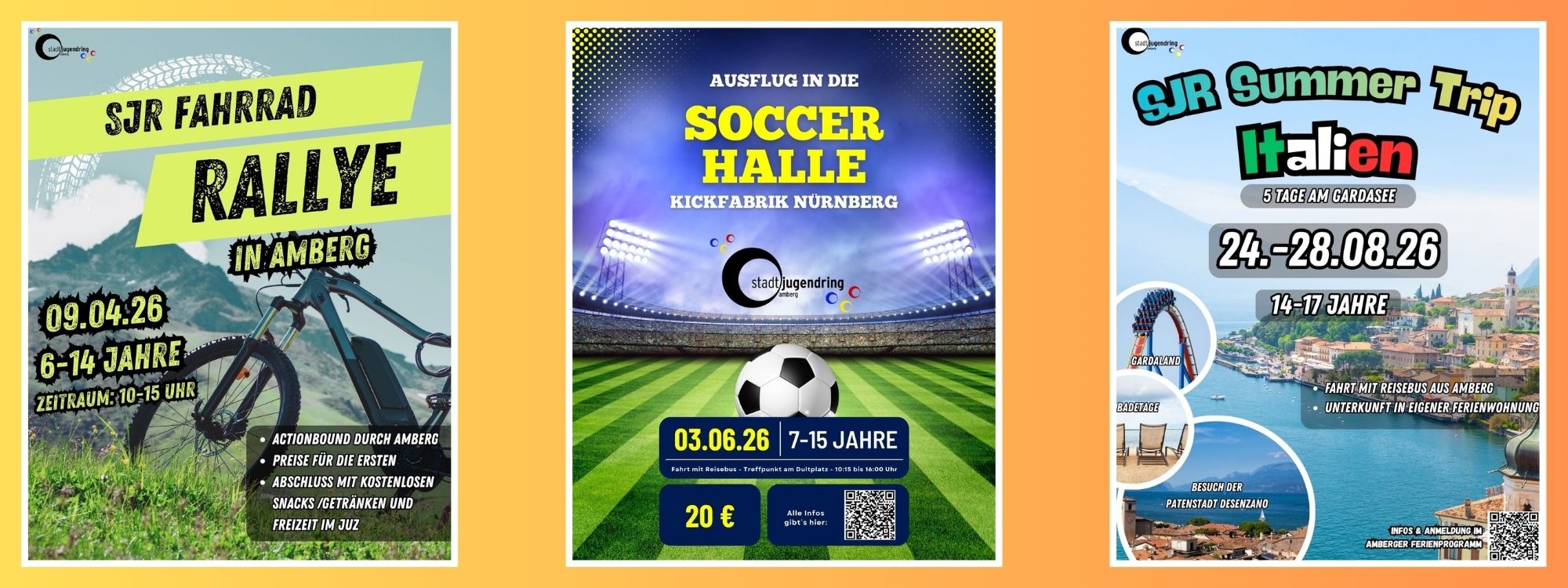 Der Stadtjugendring Amberg bietet heuer verschiedene Ferienprogramme an. Eine Übersicht darüber findet ihr hier: SJR Farrad-Rallye Den gesamten Vormittag über am 09.04.26 habt ihr Zeit an der Fahrrad Rallye durch das gesamte Stadtgebiet teilzunehmen. Wenn ihr die Rallye durchführt findet ihr immer wieder Hinweise zum nächsten […]